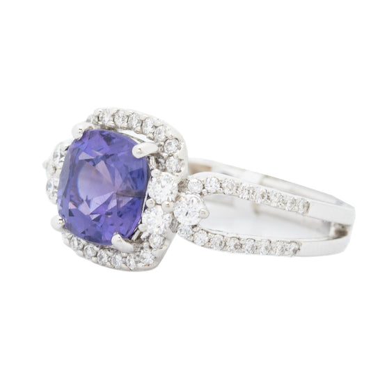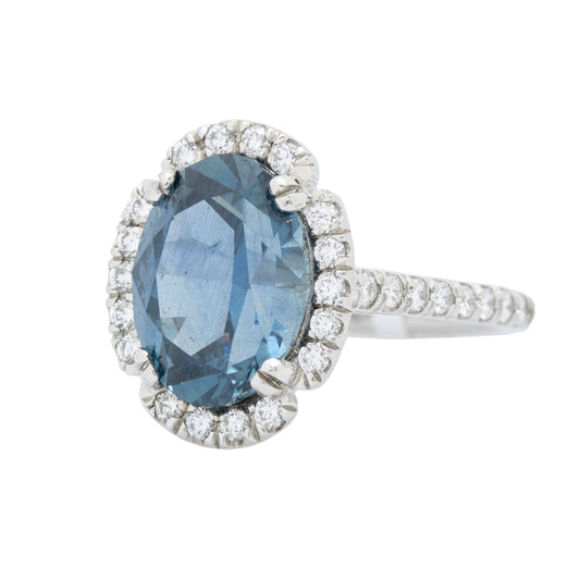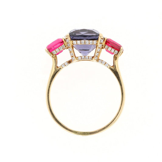 Oval Pink Topaz, Diamond and Sapphire Ring