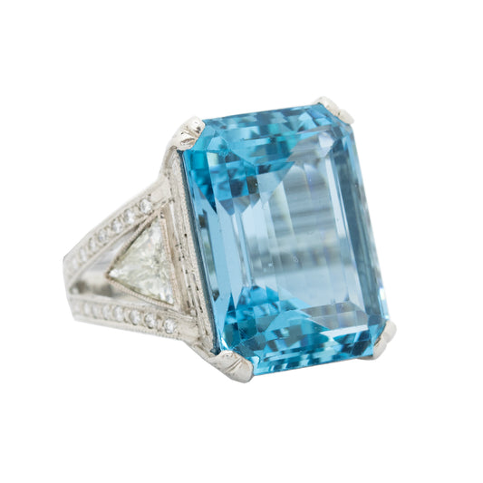 Antique Cushion Cut Aquamarine and Diamond Necklace