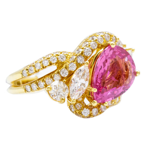 Pear Shape Ceylon Pink Sapphire and Diamond Ring