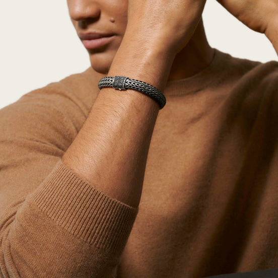 Woven by hand in reclaimed dark silver, our heritage Icon Chain is the foundational expression of John Hardy artisanship. This one features an ethically sourced black sapphire clasp.